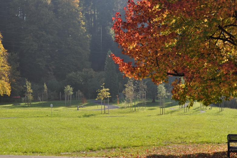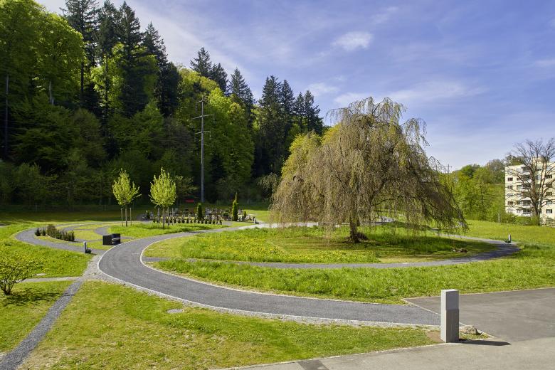 Im Zuge eines Gesamtkonzepts soll die Anlage attraktiver werden und als öffentlicher Begegnungs- und Freiraum nutzbar sein. Dazu bleibt die frühere Gestaltung mit strengen orthogonalen Wegführungen im traditionellen Bestattungsteil erhalten und wird in ihrer ursprünglichen Qualität wieder erlebbar gemacht. Gleichzeitig verleiht ein neu angelegtes, organisches Wegnetz dem waldnahen Teil des Friedhofs einen parkähnlichen, grosszügigen Charakter. Durchaus gewünscht ist, dass die Anlage als öffentlicher Begegnungs- und Freiraum wahrgenommen wird. Ein zentraler Platz mit lauschigen Sitzgelegenheiten und vielseitigen Nutzungsmöglichkeiten bildet deren Herzstück.
