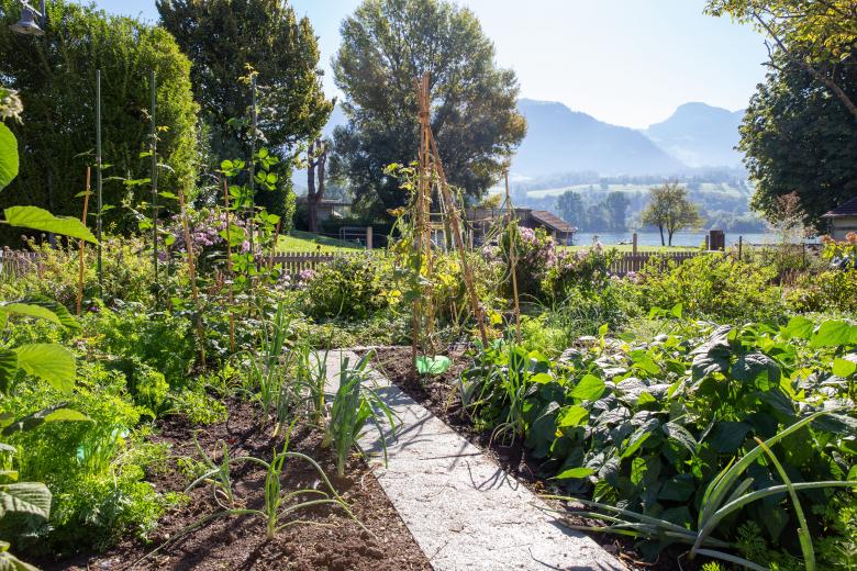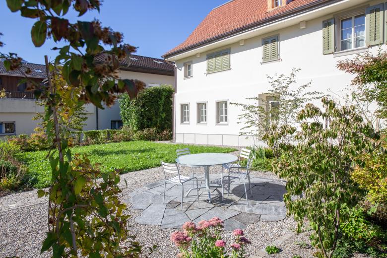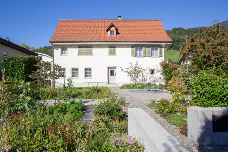 Der wildromantische Garten zum Einfamilienhaus in Sarnen verbindet üppige Natur mit klaren Formen und Abgrenzungen. Er soll sich bei geringem Unterhalt weiterentwickeln können und doch nie ungepflegt wirken.