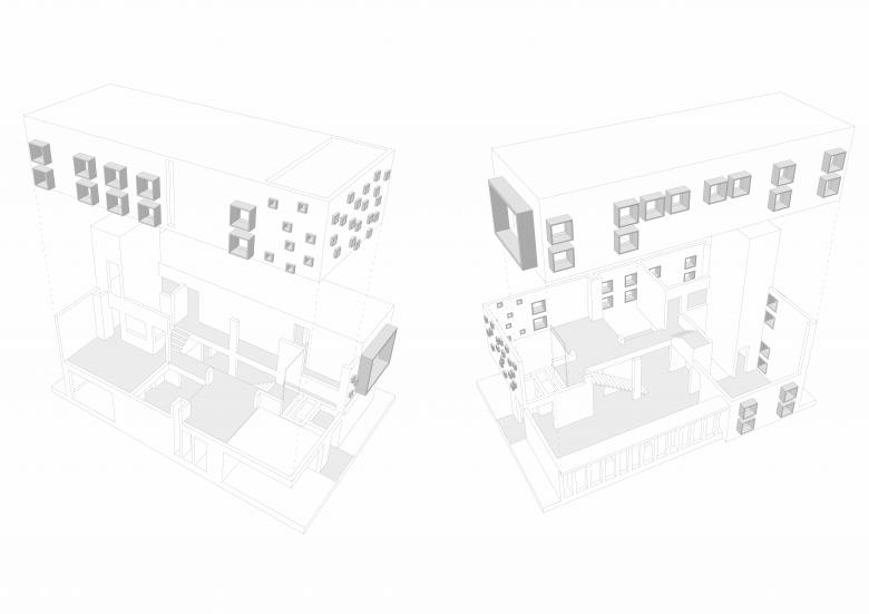 The House becomes more private every step one takes. The use of the volumes creates imaginary lines of division in public and private access sometimes contradicting the sense of openness it evokes.