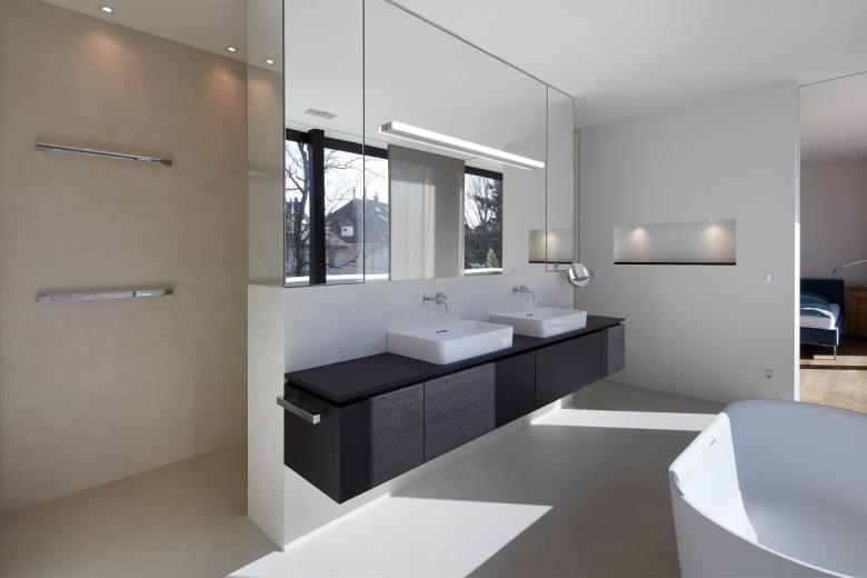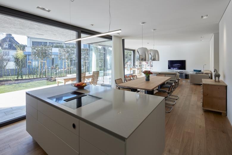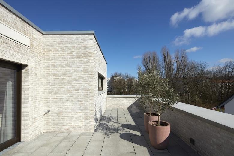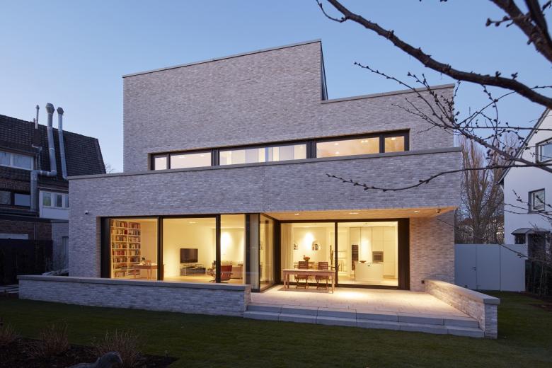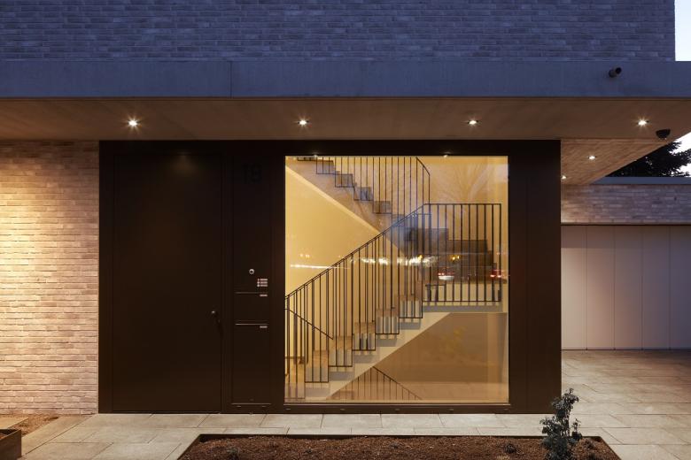 Masse und Klasse | Ein Zweifamilienhaus auf drei Geschossen mit jeweils eigener Erschließung schließt sich zur stark verkehrsbelasteten Umgebung ab und öffnet sich mit großen Terrassen und Öffnungen zum südlich anschließenden Garten.
