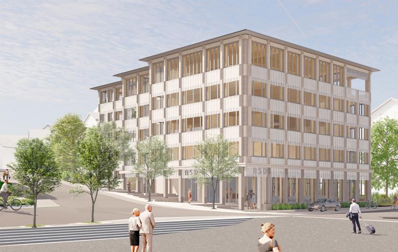 An städtebaulich zentraler Position am Bahnhof von Dielsdorf soll der neue Hauptsitz der Bezirks-Sparkasse Dielsdorf errichtet werden. Ein offen gehaltener Holz-Skelettbau mit wertiger Fassade aus lokalem Jurakalk und schleierartigen Umhüllung aus gewelltem Lochblech soll eine offene, niederschwellige und nachhaltige Bank ausdrücken.