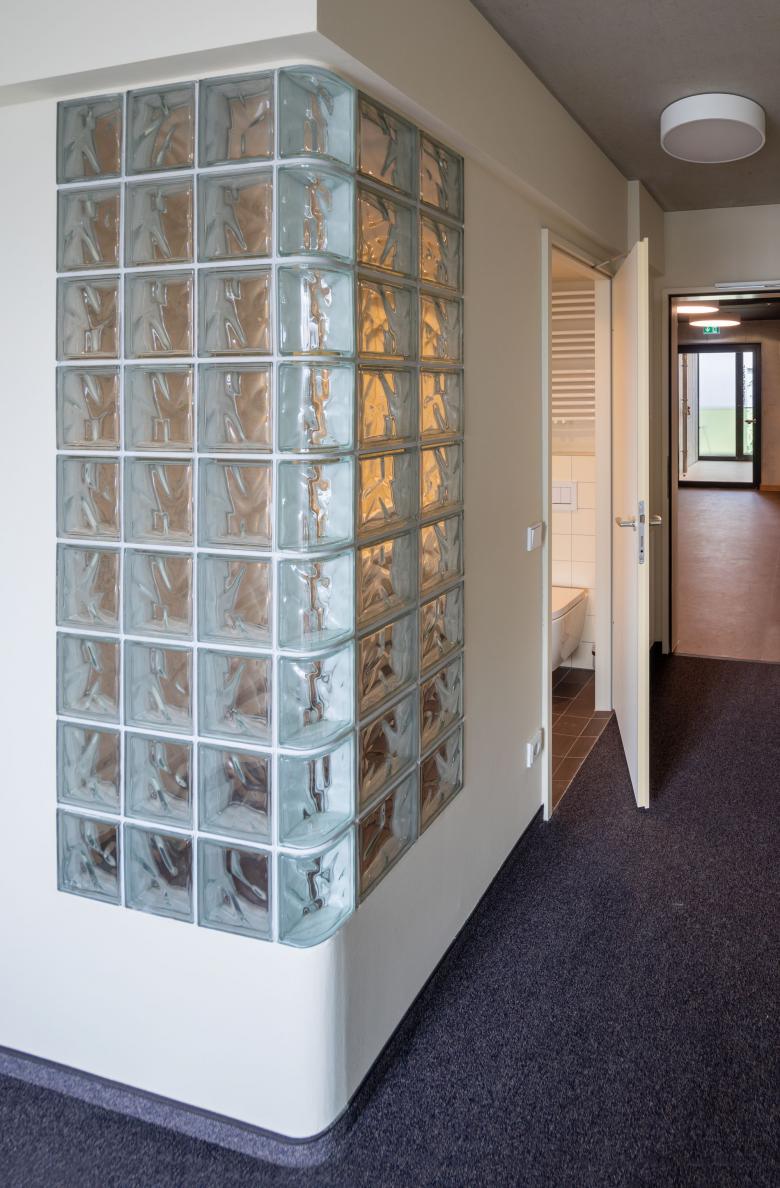 Auch innerhalb des Gebäudes bleibt der Geist des Ortes lebendig. Insbesondere die ebenerdige, doppelgeschossige Halle erweist der Vergangenheit ihre Reminiszenz. In ihrer Geometrie entspricht sie nahezu exakt der ehemals hier gelegenen Schlosserei des Pfanniwerks. Stahl und Strukturgläser geben dem Raum einen gewissen Werkstattcharakter. Die beiläufige Ästhetik gewisser Zweckbauten war ausschlaggebend auch für die Gestaltung der Betondecke, der ein sichtbares Schalungsmuster ihren besonderen Charakter verleiht.