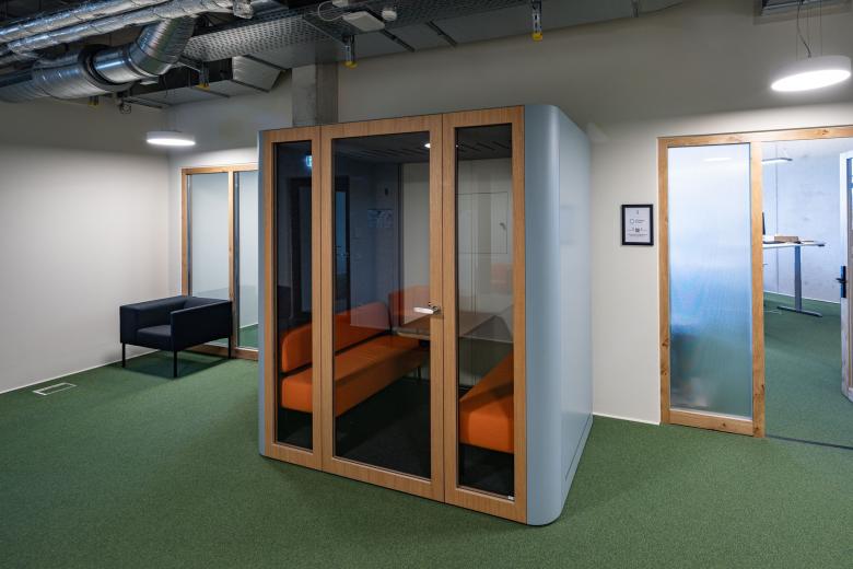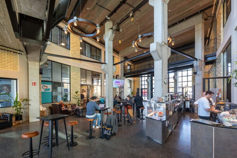 In unmittelbarer Nähe zum Münchner Ostbahnhof hatte einst die Firma Pfanni ihren Standort. Seit mehreren Jahren erlebt das ehemalige Industriegelände seine Transformation zum vielfältigen Quartier für Arbeiten, Wohnen und Freizeit, dem sogenannten Werksviertel. Mit dem schrittweise vollzogenen Weiterbau eines ehemaligen Verwaltungs- und Laborgebäudes zum Gründerzentrum setzen Hild und K ihre erfolgreiche Planungstätigkeit innerhalb des Areals fort. Im Werk 1, wo einst die Keimzelle der Produktion lag, werden heute junge Unternehmen bei ihren ersten Schritten unterstützt, durch günstige Büroflächen, Coachings sowie Netzwerk- und Mentoringprogramme. Mit dem nun fertiggestellten, im Westen anschließenden Erweiterungsbau wurden nicht nur weitere Arbeitsräume geschaffen, in den beiden obersten Geschossen stehen den Gründerinnen und Gründern auch kleine Wohneinheiten mit Coliving-Bereichen zur Verfügung. Begrünte Dachterrassen laden zur Begegnung und zum Austausch ein.