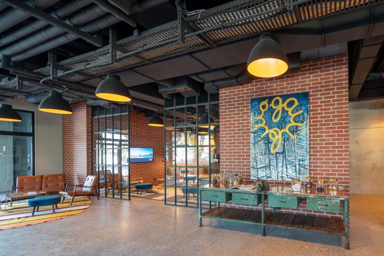 Entsprechend reagiert auch die Fassade des von Hild und K München Berlin geplanten Hotels Werk 17 mit den Materialien Klinker und Beton auf die industriell geprägte Umgebung. Großformatige Ziegel wurden in Elemente aus eingefärbtem Beton eingelegt. Dies erlaubt es, sie wie in einem Lamellenvorhang geschuppt anzuordnen. Das Relief erzeugt ein lebendiges, weil je nach Sonnenstand und Perspektive wechselndes Bild aus Licht und Schatten. Eine Reminiszenz auch an die Lehmstadt München und die lebendigen Oberflächen ihrer historischen Ziegelbauten.