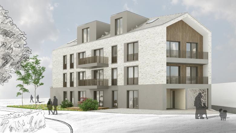 Das Gebäude beherbergt total 16 Kleinwohnungen von 1.5 bis hin zu 3.5 Zimmer-Wohnungen, welche auf den 4.5 Geschossen verteilt sind. Die interne Erschliessung erfolgt über das im Gebäudekern gelegene Treppenhaus mit einer einläufigen Treppe, sowie über einen ebenfalls an das Treppenhaus angebundenen Lift. Die Anzahl der Wohnungen erfordert eine hindernisfrei Bauweise, was im vorliegenden Projekt in allen Belangen eingehalten wird.