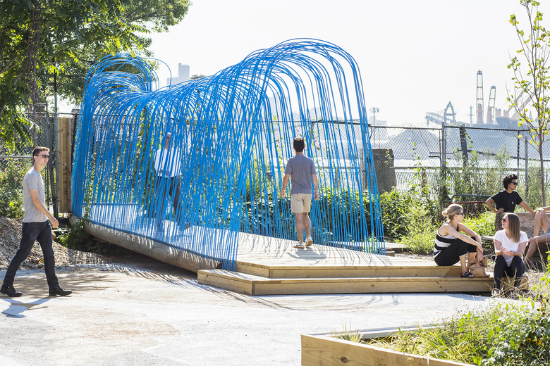 LSS collaborated with a partner landscape architecture firm to design a site strategy that softened the space and provided areas for seating, enclosure, and shade. In addition to overseeing the master plan, LSS also designed and built three kinetic structures to enhance the visitor-experience of the site: an entry tunnel and bridge, a shaded gathering and classroom space, and a waterfront shade canopy.