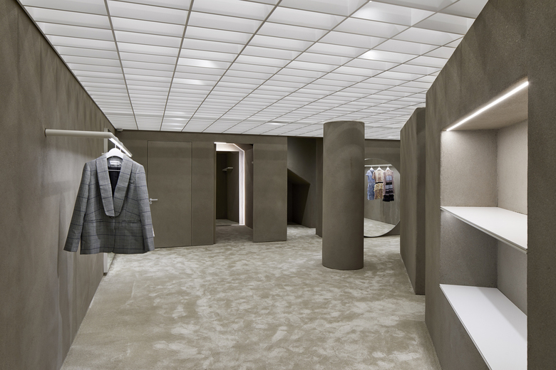 Der 233 m² große Store befindet sich im Erdgeschoss und im Untergeschoss und bietet eine Abfolge von Räumen, die ineinander übergehen und Zonen mit unterschiedlichen räumlichen und materiellen Qualitäten schaffen.