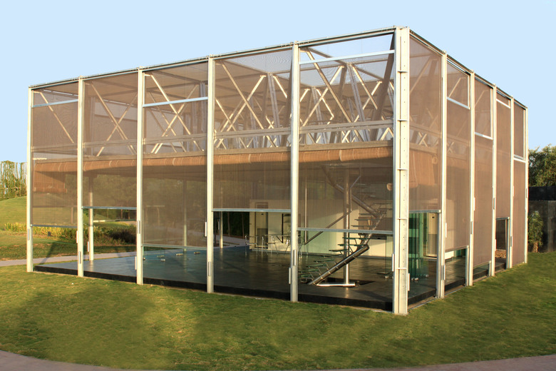bamboo chiks to provide shade from the hot tropical sun and glass so it can be air conditioned. All these layers providing desired degrees of privacy, shelter and exposure to nature, resulting in the NET HOUSE.