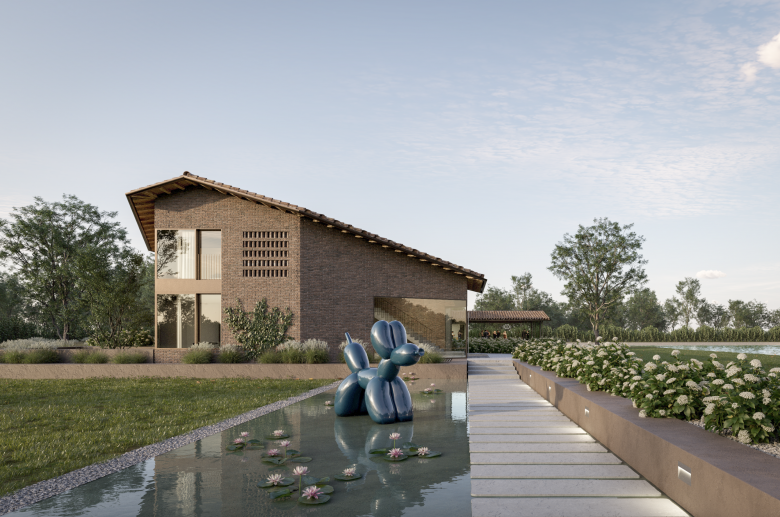 La villa vede la rielaborazione in chiave contemporanea dell'archetipo del casolare di campagna.
