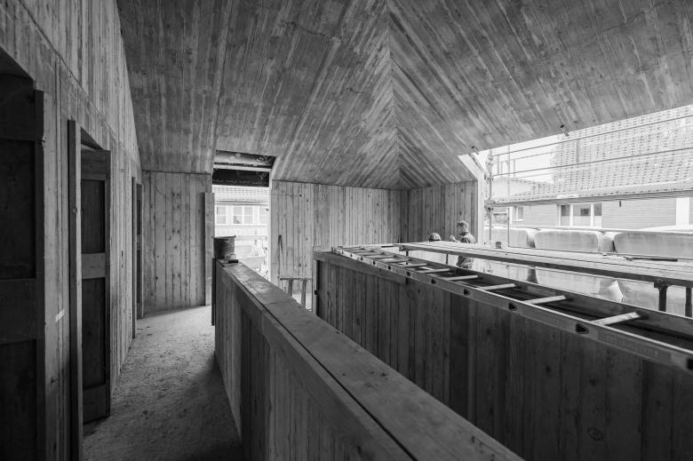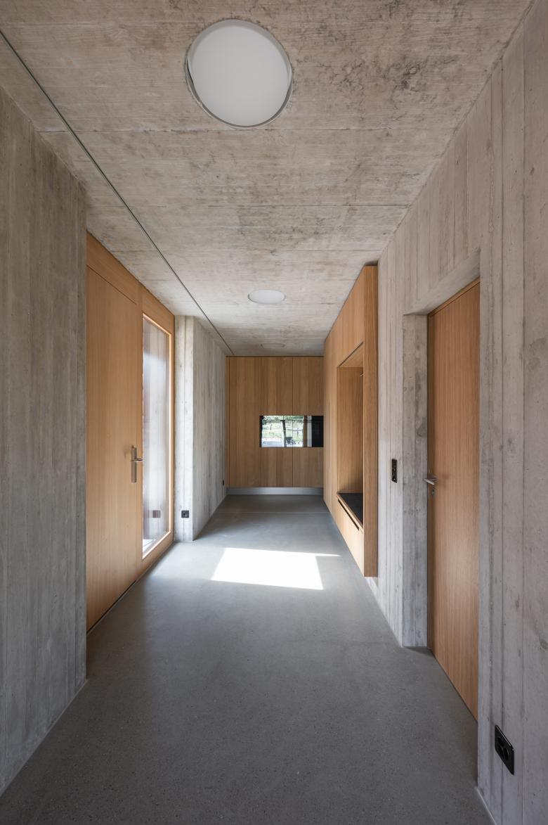 Die quadratische Grundrissform der Gebäude bietet eine optimale Anordnung der Räume im Inneren, deren Herleitung aus einem Wohnkern entwickelt ist. Beide Häuser sind dreigeschossig und bieten ausreichend Platz für jeweils eine Familie.
