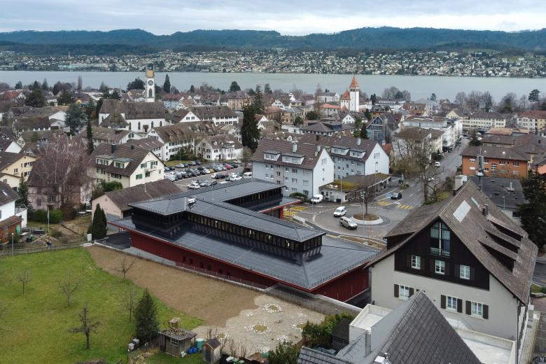 Das Ziel, ein nachhaltiges Gebäude zu errichten, war von Anfang an ein wichtiges Anliegen. Zum Beispiel wurden Bauteile mit unterschiedlicher Lebensdauer getrennt und die Holzkonstruktion wurde aus lokalem Küsnachter Holz errichtet. Die neue Photovoltaikanlage auf allen Dächern erzeugt wesentlich mehr Energie als das Gebäude während des Betriebs verbraucht.