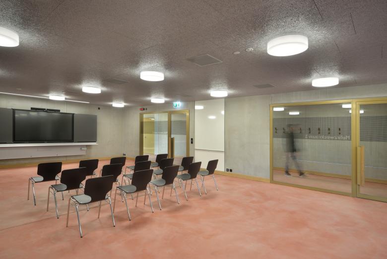Die Anlage dient zur Schiess- und Waffenausbildung sowie zur Ausbildung in Selbstverteidigung. Als Zweckbau wurde sie in Betonelementbauweise erstellt und zeigt dies auch gen aussen. Das Gebäude hat besonders hohe akustische sowie lüftungstechnische Anforderungen zu erfüllen. Die beim Schiessen entstehenden Schadstoffe werden durch einen 37-fachen Luftwechsel aus dem Raum abgeleitet. Eine Verdrängungslüftung in dieser Ausführung und Grösse ist einzigartig in der Schweiz.
