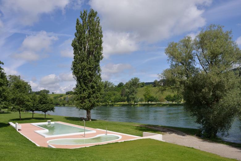 Die Sanierung mit Erweiterung der Rhybadi Diessenhofen wurde in zwei Etappen ausgeführt: In der ersten wurde das Schwimmbecken saniert und mit einem Plantschbecken und einer Liege aufgewertet. Die Pooltechnik wurde erneuert und wird nun täglich neu mit Rheinwasser gefüllt. In der zweiten Etappe wurde der längliche schlichte Holzbau aus der Nachkriegszeit mit seinem historischen Ambiente teilweise saniert und erweitert. Der Bau wurde mit einem gedeckten Sitzplatz und einem neuen Gastroteil mit Kühl- und Gefrierzelle im ursprünglichen Stil ergänzt.