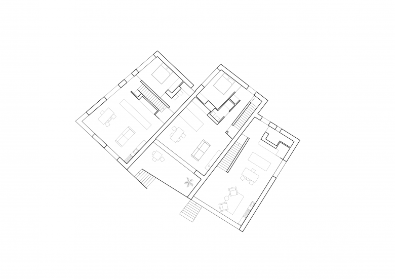 Un ensemble de 3 maisons mitoyennes remplace une villa des années 50 dans le quartier résidentiel dominant le pont de Chailly. Le projet exploite au maximum le potentiel de densification de la parcelle tout en prenant soin par sa forme et sa matérialité de s’insérer dans son contexte pavillonnaire et verdoyant. Des décalages en plan et en coupe réduisent l’échelle et renforcent la domesticité de l’ensemble. Ils créent des terrasses qui prolongent les pièces à vivres et multiplient les orientations notamment un dégagement vers l’ouest pour la maison du milieu.