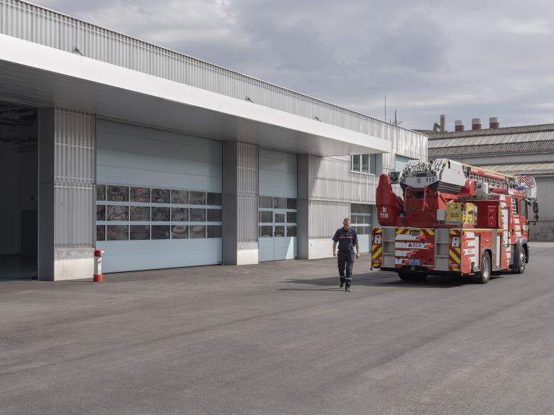 Pour répondre au mieux aux besoins de ces utilisateurs, la caserne est aménagée en deux parties : une halle tempérée proposant des espaces de grandes hauteurs (structure acier/béton) et une tête chauffée (structure béton) organisée sur 2 niveaux.