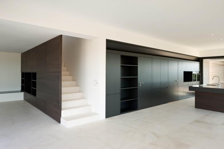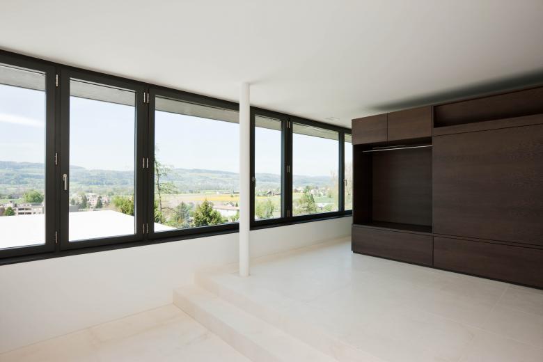 Auf den Fundamenten des alten Hauses entsteht ein neuer Baukörper, der durch seine Ausrichtung Bezug nimmt auf die Lage des Grundstücks mit seiner Aussicht auf Alpen und Greifensee. Als Bewohner des Altbaus konnte die Bauherrschaft die Qualitäten und Mängel des bisherigen Hauses genau aufzeigen. Durch das Verschieben des Zuganges zwischen Haus und Garage werden neue Ausblicke frei, die Erschliessung im DG wird dadurch grosszügiger und der Elternbereich privater. Die hangseitig vorhandenen Räumlichkeiten im Untergeschoss werden leicht vergrössert. Das Erdgeschoss gewinnt durch den grosszügigen Wohn-, Ess- und Kochbereich enorm an Qualität. Die räumliche Beziehung zwischen der Abendterrasse, dem Innenraum und dem Morgensitzplatz wertet die Wohnqualität enorm auf.