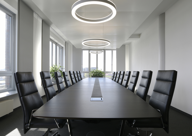 Mit der Neugestaltung der Innenräume konnte aib den Arbeitskomfort deutlich steigern. Um die großzügige Verglasung der Büros zu erhalten, wurden neue Akustik-Kühldecken installiert. Diese sorgen dafür, dass die Arbeitsbereiche im Sommer nicht überhitzen. Außerdem beinhalten die neuen Kühldecken abgependelte LED-Leuchten für eine angenehme direkte und indirekte Beleuchtung der Räume und Arbeitsplätze. Um die technische Ausstattung heutigen Anforderungen anzupassen, wurde die IT-Infrastruktur auf CAT7-Standard angehoben.