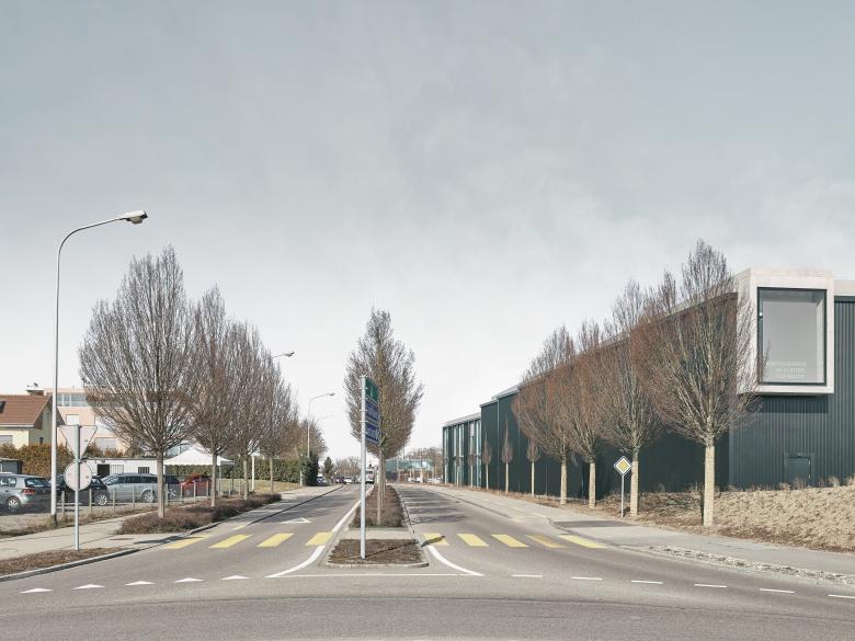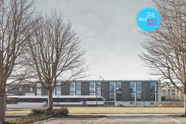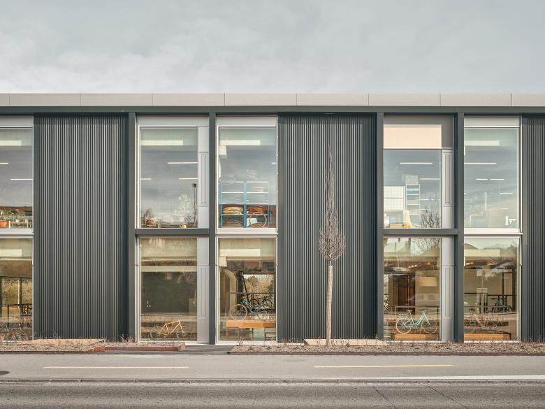 Direkt am beliebten Radweg um den Bodensee in Kreuzlingen entstand das neue Gebäude der Firma „Tour de Suisse Rad AG“. Das Gebäude verbindet Produktion, Büro, Lager, Ausstellungsfläche und ein Café unter einem Dach. Eine markante Eingangsfassade in Sichtbeton bespielt den vorgelagerten Platz. Von dort aus entwickelt sich das Gebäude auf zwei Geschossen entlang der Seetalstrasse und der Geleise. Ein grosses Schaufenster bietet Platz zur Präsentation der Firma und ihrer Produkte, und im offenen Café- und Ausstellungsbereich geben grossformatige Öffnungen Einblick und ermöglichen eine gute Belichtung der Arbeitsplätze.