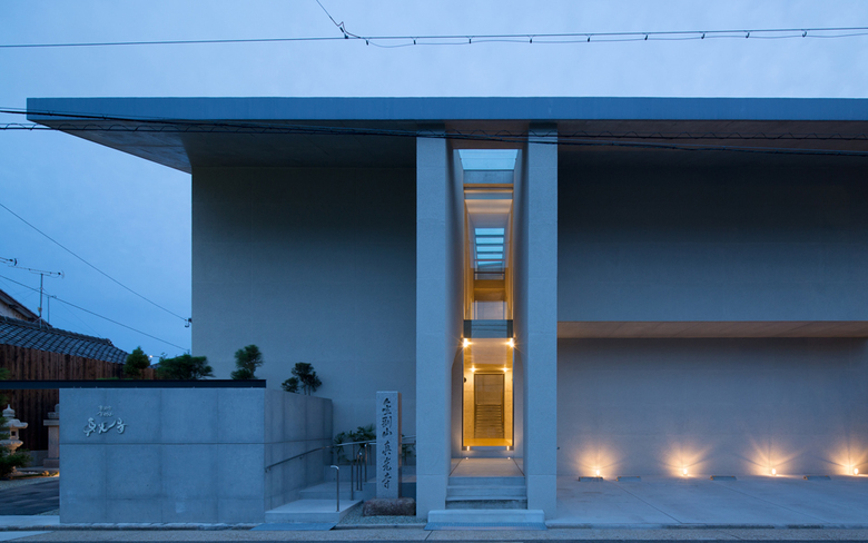 山門からは明、暗、明の光のグラデーションをつくりながら空へと続く参道が実現し、室内においては上下に移動するシークエンスの中で、空と街とをつなぎ、豊かな光の体験を促している。