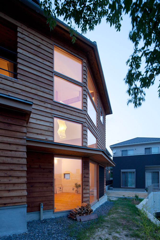 この場所は市街化区域と市街化調整区域の際に位置し、眼下には豊かな田園風景を一望することが出来る環境である。クライアントからは小さな部屋で区切るような家ではなく、家族や自然との関係が開放的で一体感のある生活を求められた。