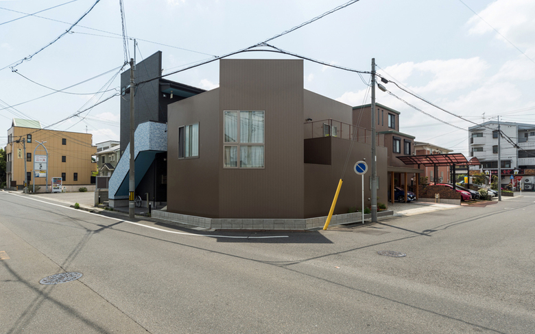 クライアントはご夫婦と双子の男の子。交通量の多い道路、老舗の呉服屋、住宅、集合住宅に