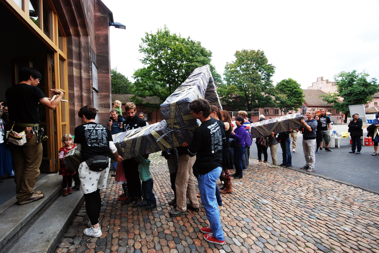 危口統之が主宰するパフォーマンスグループ「悪魔のしるし」のスイスツアーをサポート。複雑な形状の物体を建物の中に搬入(搬出)する「Carry in Project」をチューリッヒ、バーゼル、ルツェルンの三都市で上演。物体はスイス各都市の学生チームとのワークショップを通して設計され、製作は現地で行われた。ルツェルンの上演会場はジャン・ヌーベル設計のKKL。