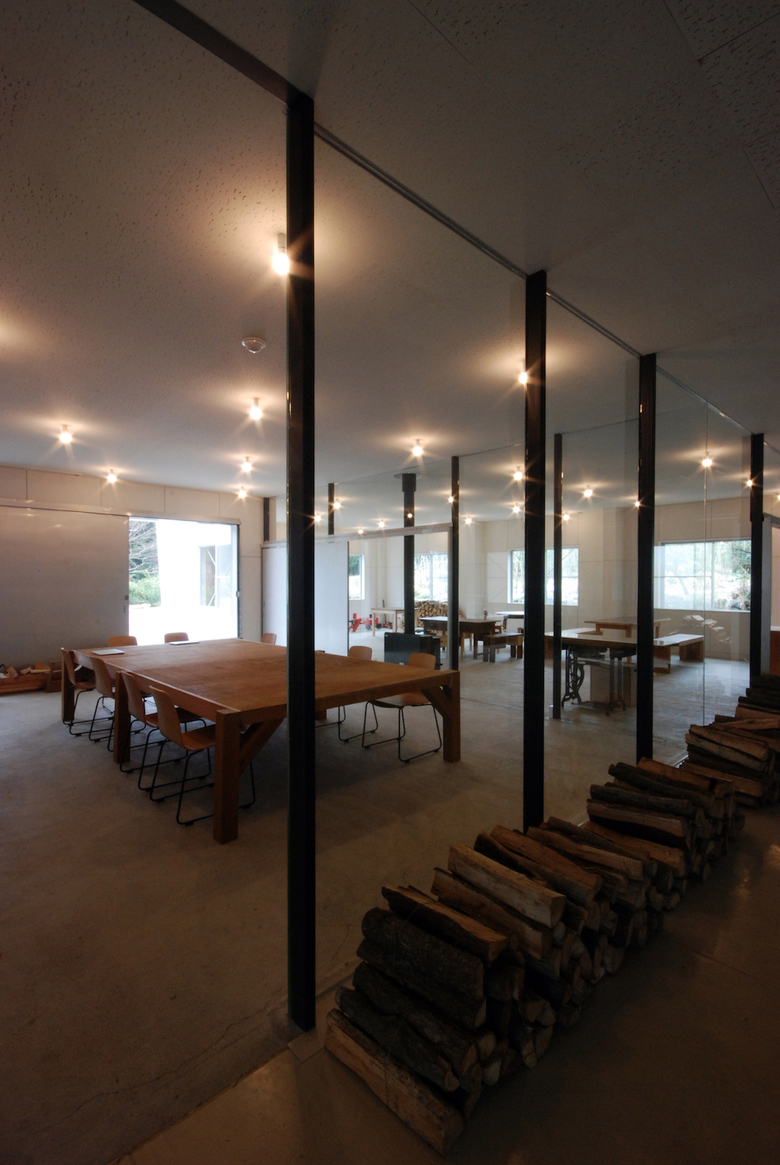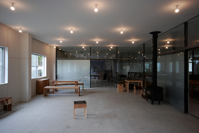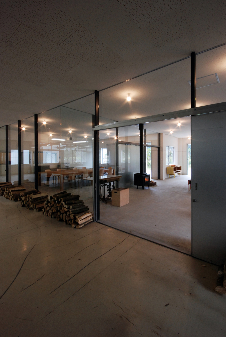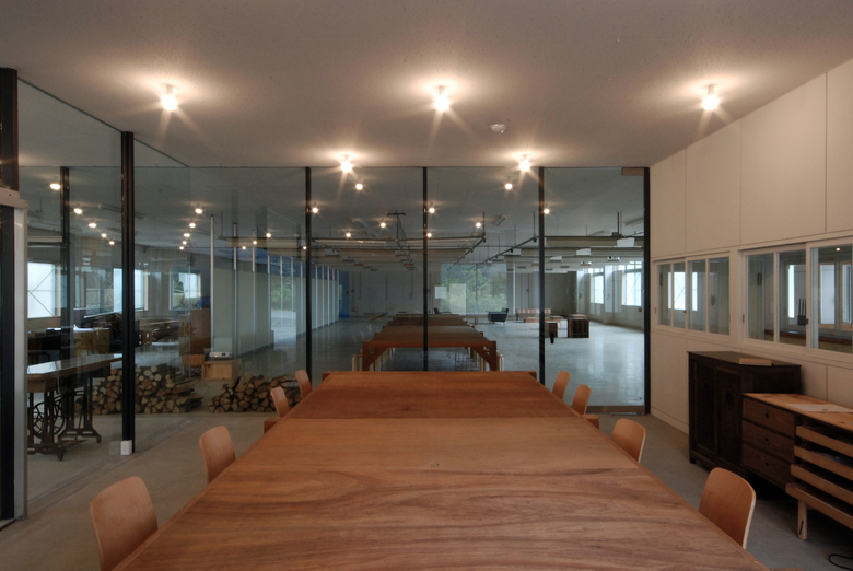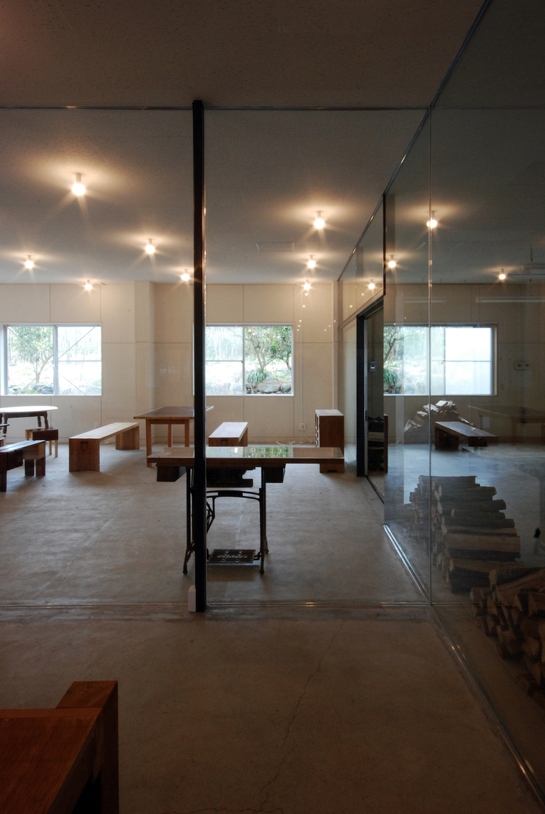 徳島県の神山町における、旧縫製工場をオフィスにコンバージョンする計画。NPO法人グリーンバレーが推進する「創造的過疎」の一環として誘致された企業のサテライトオフィスが集積する場所であると同時に、オフィスの従業員と地域住民が集う場所となることを目指して計画した。一部をガラスパーティションで区画してオフィスやラウンジとし、残りの工場の大空間を多目的に使えるスペースとして更なる改修の余地を残すことで、「成長するオフィス」を設計した。什器類は、町民の方々からいらなくなった家具を頂き、それらを素材にして椅子や机をデザインするワークショップを行い、学生たちと製作している。