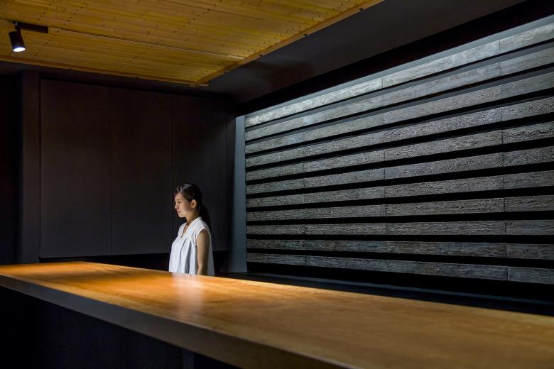 また空間は黒をベースに照度を落としながら竹、石、和紙、塗りなど和の素材感引き立たせ、単純な展示空間としてではなく、文脈の中で作品を楽しんでもらえることを意識している。