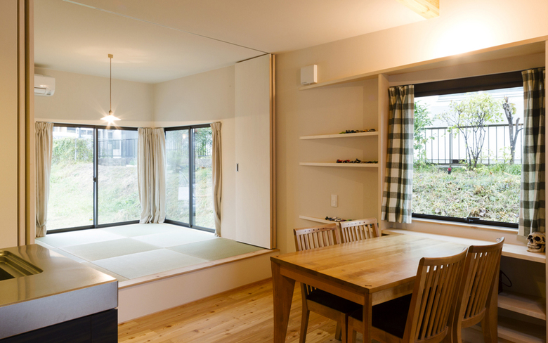 敷地は10年以上前に開発された閑静な住宅街の一角。長くつづく一本道の突き当りに南面を向ける環境では、道ゆく人々の視線を避けながらどのように光を採り入れればよいのかが課題となった。