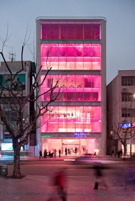 The new façade combines references from product packaging, decorative arts, fashion and architectural iconography to create a modern identity for the store, expressing Barbie’s cutting-edge fashion sense and history. The façade is made of two layers: molded, translucent polycarbonate interior panels and flat exterior glass panels printed with a whimsical lattice frit pattern. The two layers reinforce each other visually and interact dynamically through reflection, shadow and distortion.