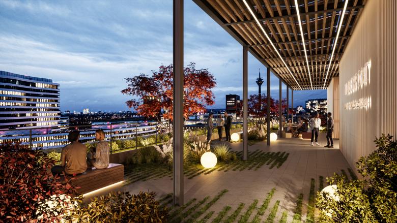 Mit dem Timber Port entsteht im Düsseldorfer Medienhafen ein nachhaltiges und klimafreundliches Niedrigenergiegebäude in Holz-Hybrid-Bauweise.