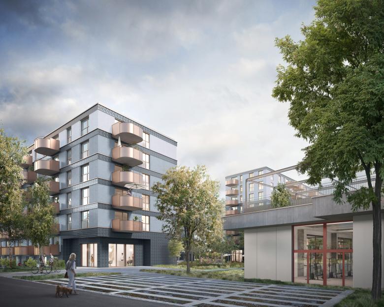 Die Volumen der geplanten Wohnbauten und des Bürogebäudes werden so gesetzt, dass zusammen mit dem bestehenden Gewerbegebäude ein charaktervoller und identitätsstiftender Aussenraum entsteht, dem gerade während dieses laufenden Transformationsprozesses eine grosse Bedeutung zukommt. Eine wichtige Rolle für das neue Quartier spielt zudem die Tramhaltestelle auf dem Grundstück des Veranstalters. Auf die zu erwartende zunehmende Fussgängerfrequenz wird hier mit einem neuen Platz, dem Ringplatz, reagiert.