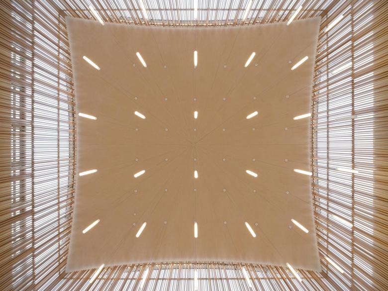 Besondere Sorgfalt wurde auf die Gestaltung der Synagoge gelegt, die städtebaulich wirksam an der die Süd-Ost-Ecke des Neubaus positioniert wurde. Der ruhig proportionierte Raum erhielt eine zweite, nach Osten ausgerichtete Holzschale, deren Lamellen den Verlauf des Sonnen- und Tageslichts gedämpft in den Innenraum übertragen und dem überwölbten Synagogenraum bei aller Schlichtheit eine hohe meditative Qualität geben.