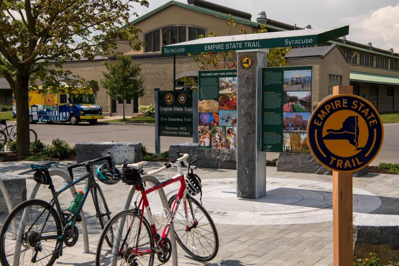 In 2017, Starr Whitehouse teamed with C+G Partners and ALTA Planning + Design to create design guidelines for New York State’s ambitious Empire State Trail system, a continuous 750-mile route spanning from the urban core of New York City north to Canada and west to Buffalo. Now, Starr Whitehouse has been retained with Bergmann as Engineer of Record to design and implement the first six gateways for the new system. Located in Manhattan, Syracuse, Rochester, Lockport, Tonawanda, and Buffalo, each Gateway reflects the local character of its host community and provides New Yorkers with the opportunity to explore the state’s iconic landscapes and diverse history. The Gateways also enhance access points to the trail, transforming them into vibrant social spaces with small gathering areas and amenities such as benches, restrooms, potable water, information kiosks, bike repair, and charging stations. Native plant palettes provide visual interest as well as habitat for local and migratory animal and insect life. Lauded by Gov. Cuomo, the Trail will protect native ecosystems and drive economic activity. Upon its completion in 2020, the corridor will be the longest multi-use state trail in the nation.