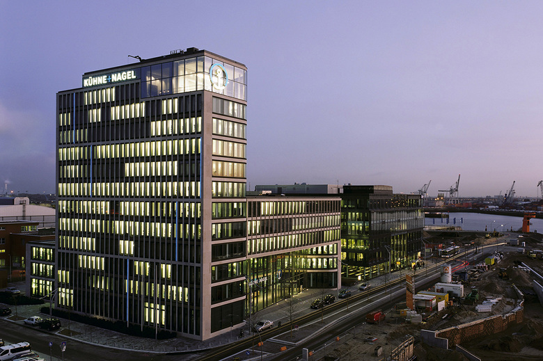 Der repräsentative Unternehmenssitz unterstreicht das große Engagement von Kühne + Nagel in Hamburg und den Stellenwert, den dieser Standort für die weltweit operierende Logistikgruppe hat. Die Ausbildung der Baukörper schafft einen Dialog der Gegensätze mit einer äußeren, in Naturstein und Glas ausgeführten, streng vertikal gegliederten Fassade, die sich als harte Schale selbstbewusst der Speicherstadt zuwendet. Die innere Hoffassade dagegen stellt sich als weiche Haut dar. Diese Glasfassade ist durch auskragende Deckenplatten in der Horizontalen betont, die durch abgerundete Ecken das Rechteck des Innenhofes aufheben. Der dreigeschossige, gläserne Eingangsbereich setzt mit seiner Leichtigkeit und Transparenz einen reizvollen Kontrast zur strengen Steinfront der Nordfassade.
