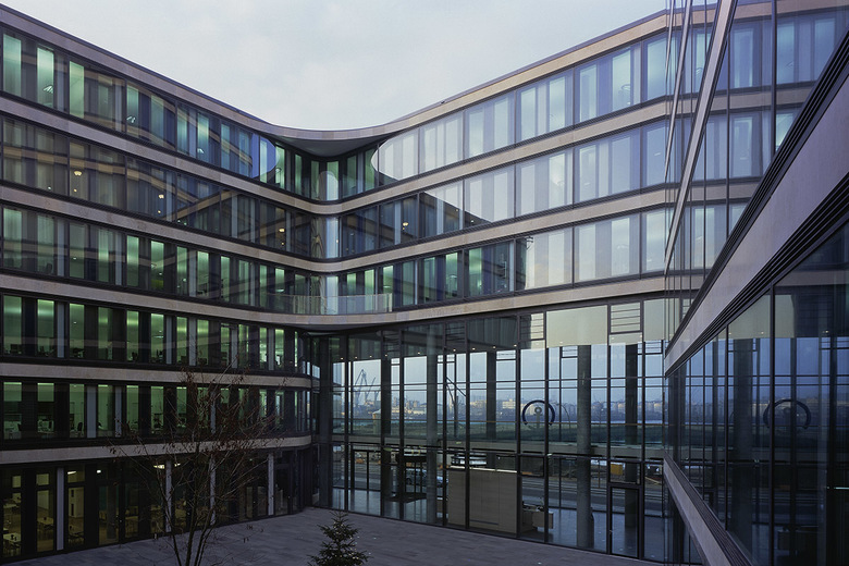 Basierend auf den im städtebaulichen Masterplan verankerten Strukturvorgaben ist ein Gebäude mit eigener Identität entstanden, das sich in seiner gesamten Struktur konsequent dem Wasser zuwendet. Zwei dreigeschossige, um 90 Grad versetzte Winkel umschließen einen Innenhof und öffnen sich mit einem großzügigen Foyer, einem Fenster, zum Grasbrookhafen. Als dritter Baukörper bildet sich im Nord- westen ein 12-geschossiger Turm aus, der einen wichtigen städtebaulichen Orientierungspunkt darstellt und den Bezug zur Innenstadt aufnimmt.