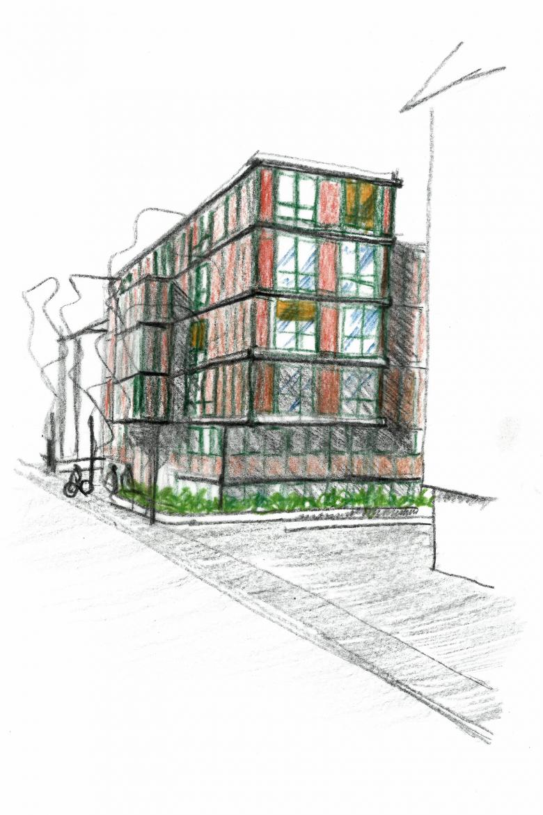 Im lebendigen Berner Länggassquartier soll ein, in den 1970er erbautes, Mehrfamilienhaus abgerissen und neugebaut werden. Wir schlagen ein nachhaltiges Konzept vor, dass Teils die bestehende Struktur erhält und mit vier neuen Geschossen in Holzbauweise ergänzt wird. Das neue Haus bietet ein vielfältiges Angebot an Gewerbe, Gemeinschaft und unterschiedlichen Wohnformen.