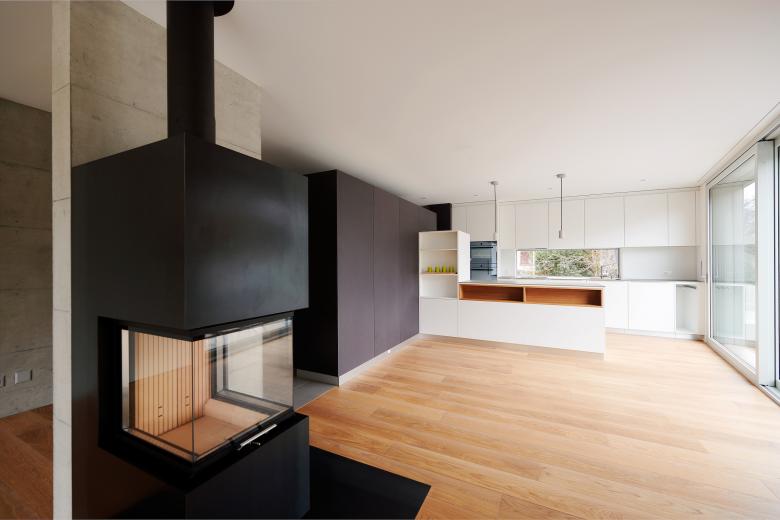 Die Wohnungen sind mit flexiblen, nutzungsneutralen Grundrissen ausgeführt, die Individualzimmer verfügen jeweils über eine Fläche von rund 14m2. Beide Einheiten haben mindestens einen privaten Aussenraum erhalten. Die Orientierung erfolgt auf mindestens zwei Wind-