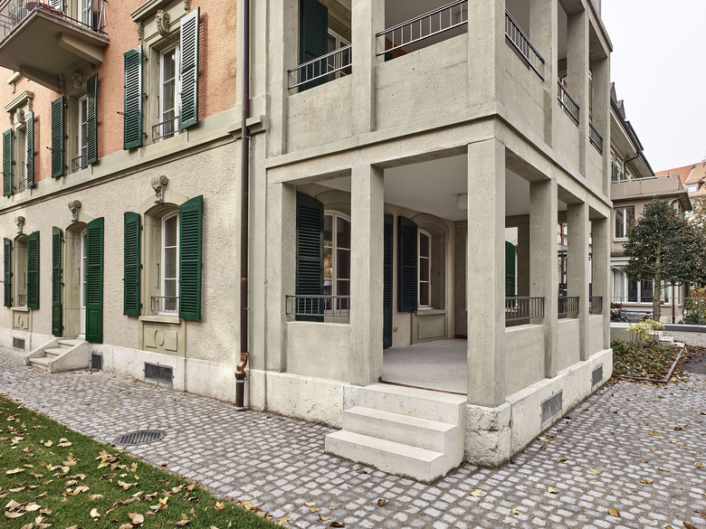 Die vier Reihenmehrfamilienhäuser «Mon Repos» wurden 1875–1877 durch den Berner Baumeister Friedrich Kern erstellt und gehören zu den bedeutendsten Beispielen dieses Bautyps im Länggassquartier. Das Wohnhaus an der Zähringerstrasse 22 wurde in den 1960-er Jahren in ein Altersheim umgebaut, die Verandaterrasse musste einem eingeschossigen Anbau für die Produktionsküche und dem Essraum weichen. 2012 sanierten wir Fassade und Dach, wichtige bauhistorische Erkenntnisse zu Materialität und Farbigkeit wurden ermittelt und wieder hergestellt. Aufgrund sich veränderter Anforderungen wechselte kurz darauf der Betreiber Domicil Bern den Standort und wir erhielten den Auftrag für die Rückführung zu einem Wohnhaus.