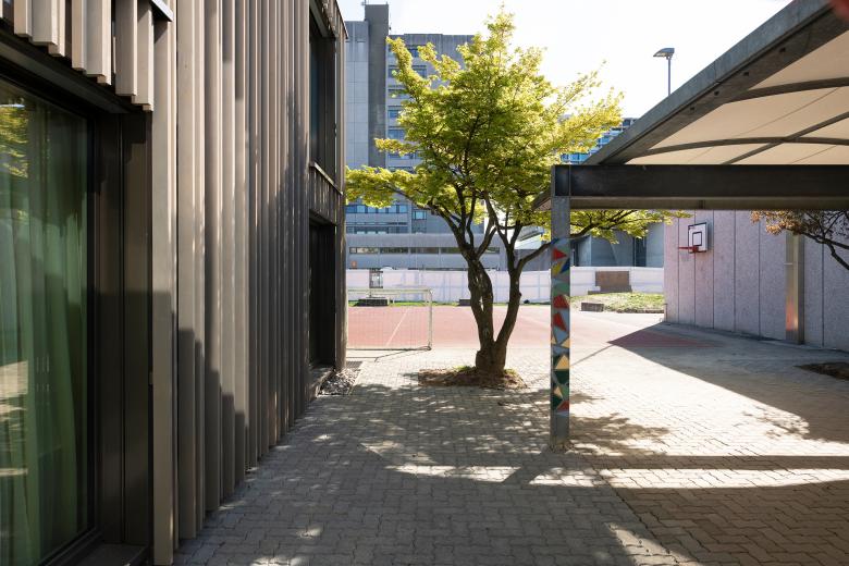 Ein Eingeschossiger Holzbau erweitert das Mitte der 1970er-Jahre erstellte Schul- und Therapiezentrum beim Bürgerspital Solothurn um rund 1‘400m² und verbindet sich mit dem Bestandesbau über einen Hof. W2H Architekten AG erhielt den Auftrag als Generalplaner durch ein selektives Auswahlverfahren auf Einladung. Nach Abschluss des Neubaus und einer einjährigen Baupause, welche für die Planung der Sanierung genutzt wird, werden die Bestandesbauten mit einer umfassenden Sanierung in die gegenwärtige Zeit überführt.