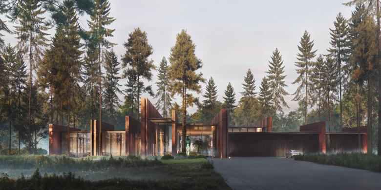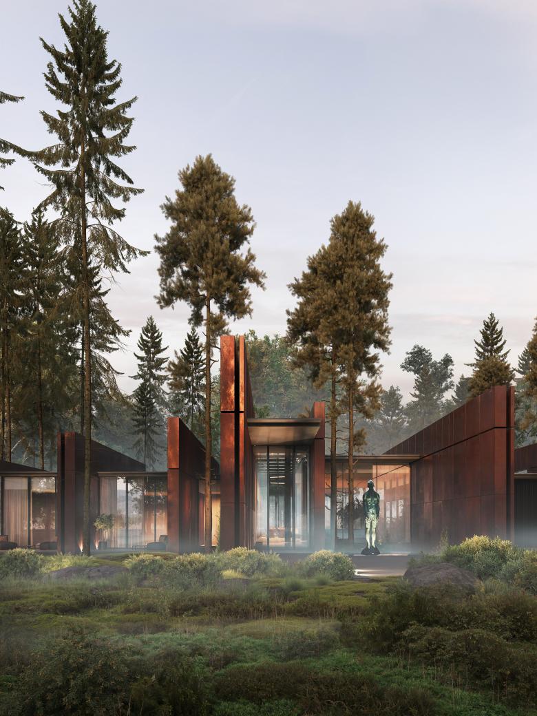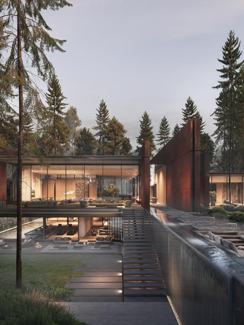 The Solar residence, situated within a tranquil pine forest, represents a sophisticated fusion of architecture and nature. Designed by YODEZEEN, this project focuses on a seamless integration with the natural surroundings, employing materials like corten steel to harmonize with the landscape’s tones and textures. Throughout the project, careful consideration was given to minimizing disruption to the environment, with the surrounding flora and landscape preserved to the highest extent possible. This approach not only enhances the home’s aesthetics but also upholds a commitment to conserving the local ecosystem.
