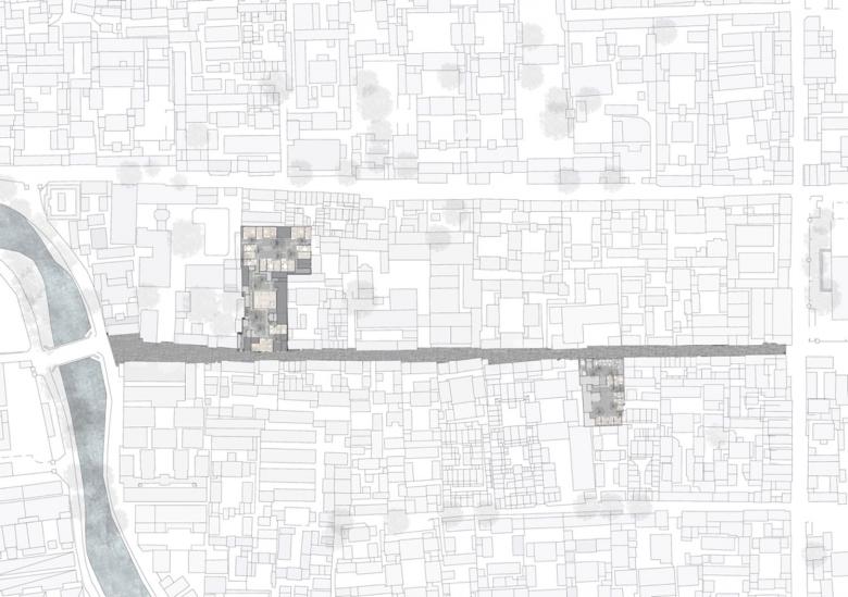 The Yu’er Hutong is located to the north of the Forbidden City in Beijing and continues to be characterized until today by densely developed four-sided courtyards (Siheyuan). The hutong alleyways are arranged in strictly east-west and north-south directions. The buildings, which develop in each unit individually over several courtyards until deep inside the block, are situated in an organic structure in this grid.