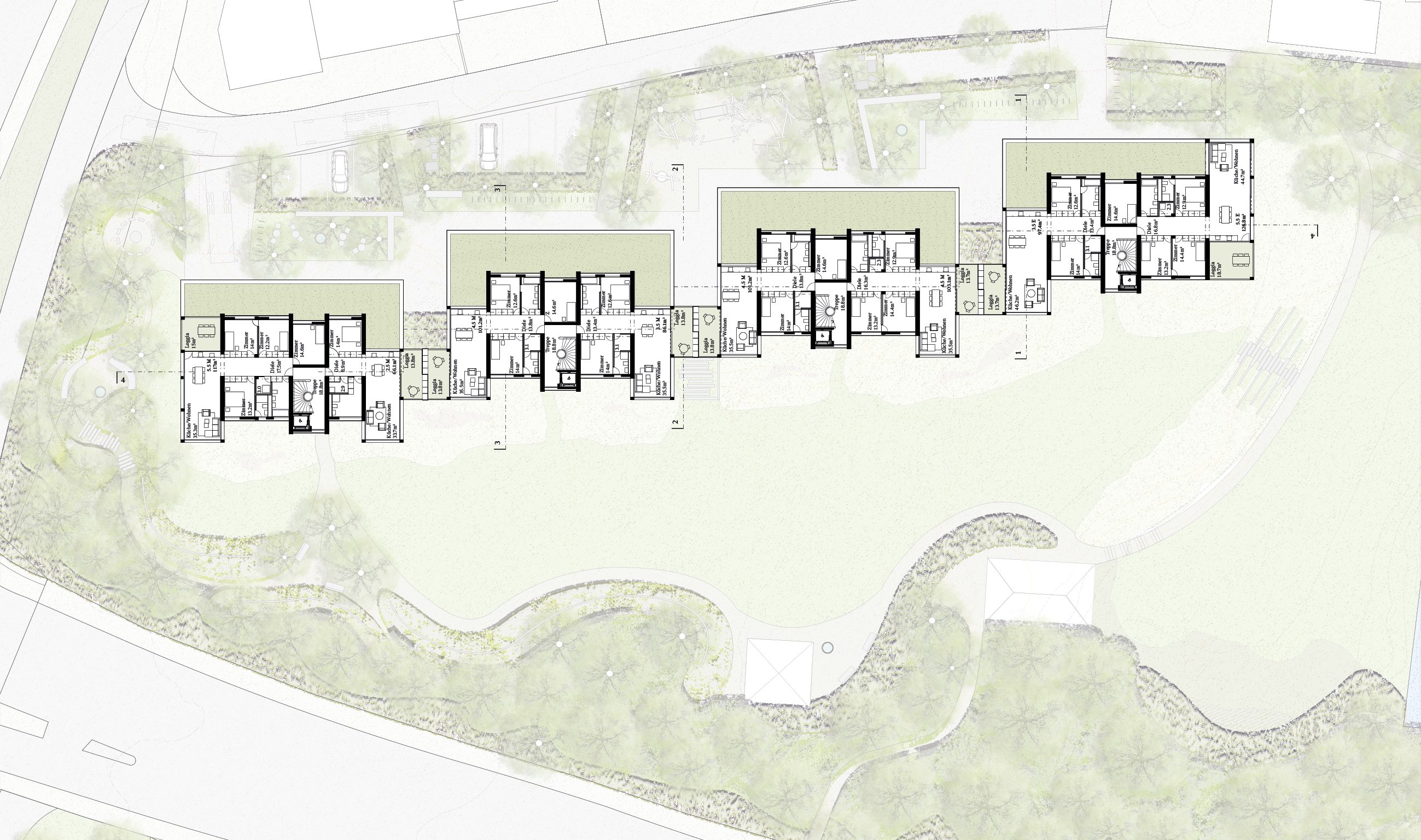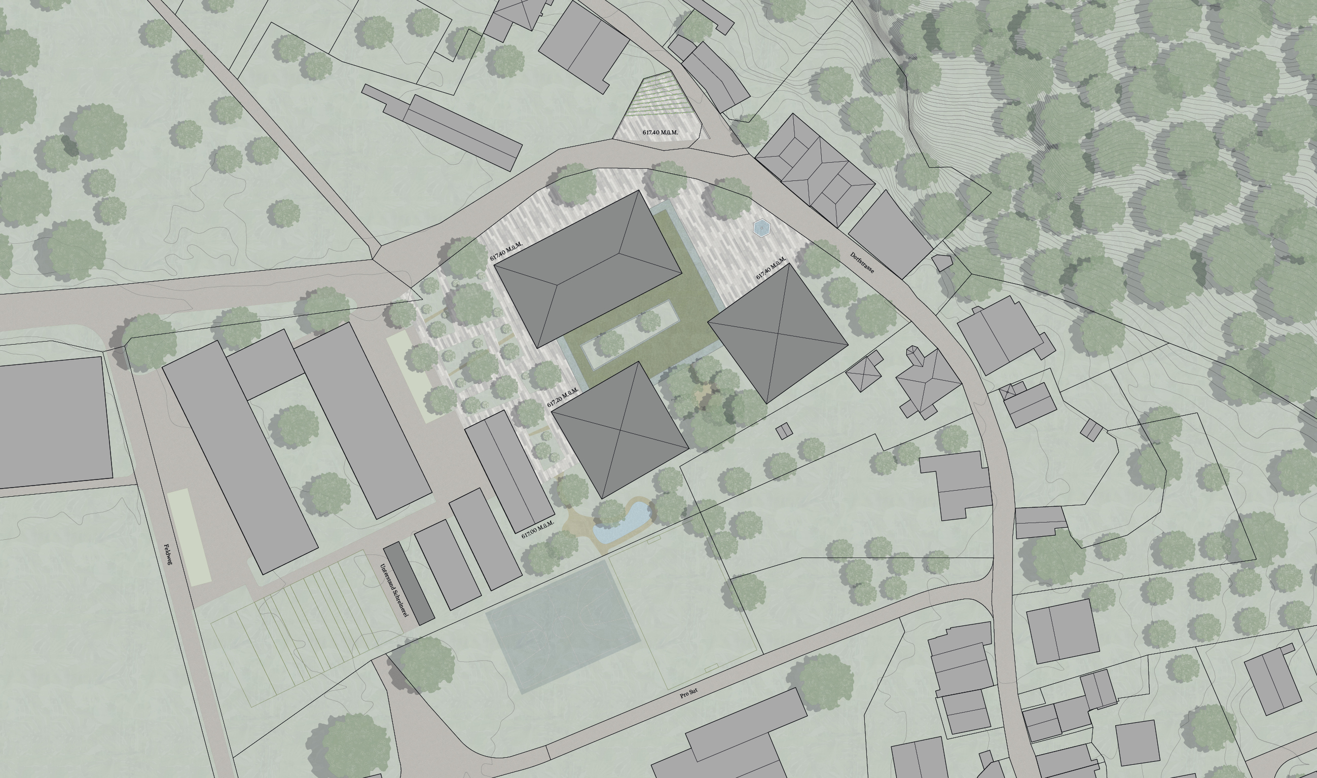 Das Projekt verbindet Dorf und Landschaft durch drei Neubauten, die um einen zentralen Platz mit Brunnen, Cafeteria und Gemeinschaftsbereichen angeordnet sind und Inklusion, Orientierung sowie Austausch fördern. Mit ökologischen Materialien, flexiblen Wohnformen und einer Low-Tech-Strategie entsteht ein nachhaltiges, identitätsstiftendes Wohnheim für vielfältiges Zusammenleben.