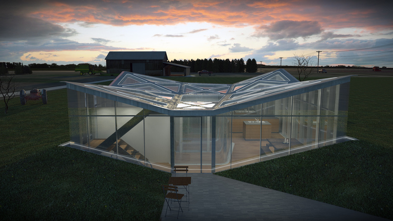 启动建筑这种运动的关键是发生与雷暴结合的龙卷大风,房屋外部成套的太阳能电池随日光的转移而伸缩旋转以获得最高的日照强度,凯夫拉尔纤维材料与夹在该材料中间的透明绝缘体共同形成了一种半透明的外部墙体,在对外部天气形成屏障的同时也使阳光得以漫射进建筑结构内部。此外,我们还探索研究了光催化涂料和碳纳米管在建筑外墙上吸附并清洁污染物的应用,外墙上的污染物将直接被转换为家庭燃料为家庭提供电力和水力。