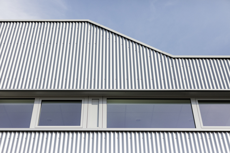 Die Detailgestaltung der Fensterbänder wird den Anforderungen an verschiedene Sturz- und Brüstungshöhen gerecht für Arbeits- und Nebenräume.