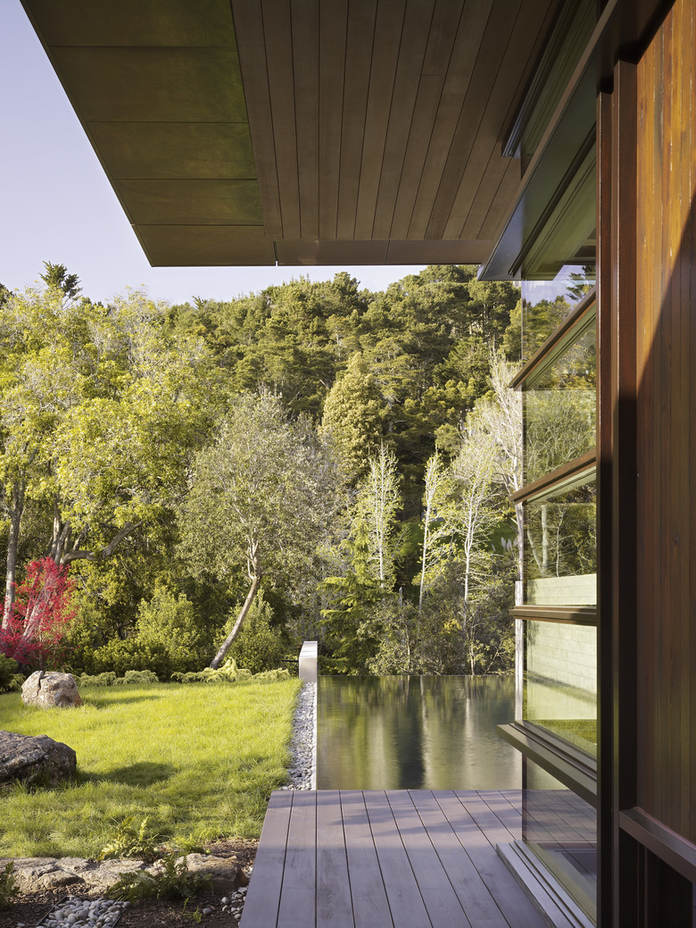 Conceived as a series of interconnected pavilions enclosing a garden, the courtyard-house typology is utilized to achieve private interiority within the suburban context. The strategic interplay of light and shadow, expansion and contraction, solidity and lightness is used to derive spatial richness. The house incorporates fuel cell and solar panel technologies, passive cooling, greywater reclamation, and extensive use of reclaimed finish materials.