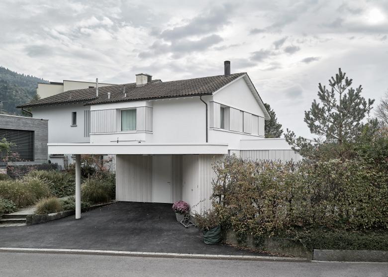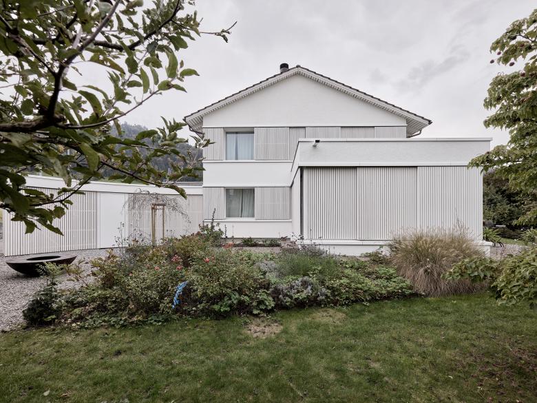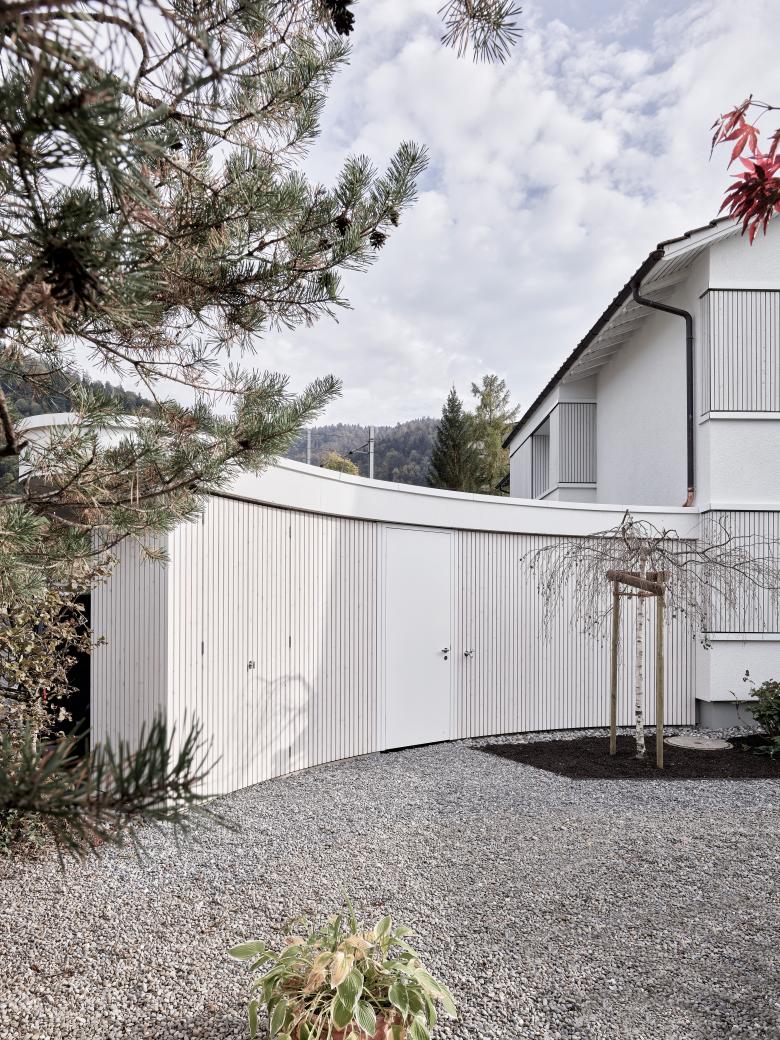 Der Erweiterungsbau lehnt sich an die Architektur-sprache des Bestandes- und Erweiterungsbaus an und zeichnet in seiner organischen Form die Struktur des bestehenden Garten's nach. Trotz sichbarer Geschichte des Hauses sollen sich die zwei Erweiterungsbauten zusammen mit dem ursprünglichen Bau zu einem Ganzen verbinden.