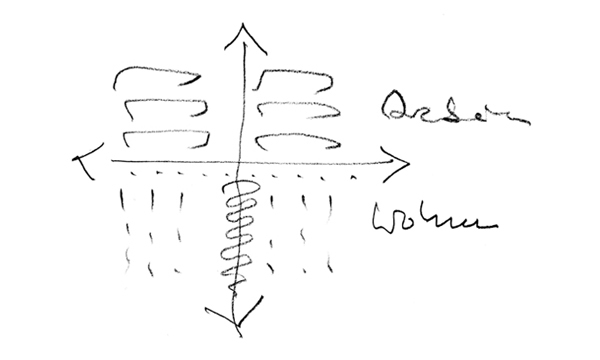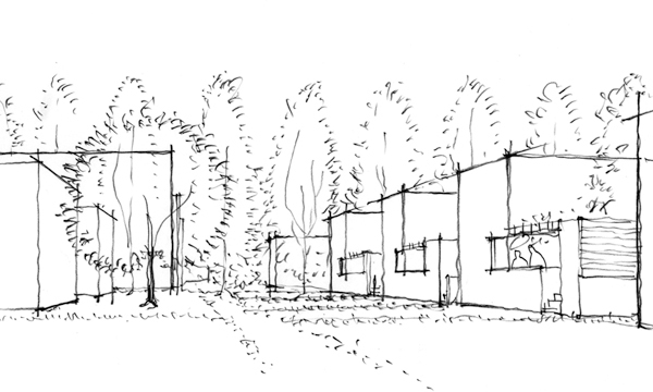 Die ins Auge gefasste Verdichtung verändert diesen Charakter nicht nur volumetrisch, sondern ist auch eine potentielle Bedrohung für das soziale Funktionieren des Raumsystems: Mit den neuen Baukörpern kommen mehr Menschen, mehr Autos, mehr Interaktion in die Siedlung. Unser Vorschlag zielt deshalb darauf ab, die Bestandsbauten vor zu grosser Nähe und zu erdrückender Nachbarschaft zu schützen und dennoch eine annehmbare Ausnutzung zu erreichen. Die Neubauten sollen nicht – oder nicht wesentlich – höher sein als die bestehenden Wohnbauten, und sie sollen in ihrem Wohnumfeld trotz der höheren Dichte attraktive Aussenraumqualitäten aufweisen, damit ihre Bewohner nicht die Wiesen vor den Fenstern der Altbauten besetzen.