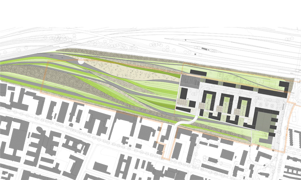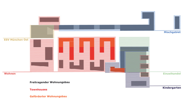 Masterplan für eine Umstrukturierung des 13.5 ha grossen Areals des ehemaligen Bahnbetriebswerks 4 in München am S-Bahnhalt Berg am Laim zu einem qualitätvollen neuen Stadtbaustein im Münchner Osten. Wettbewerb auf Einladung.