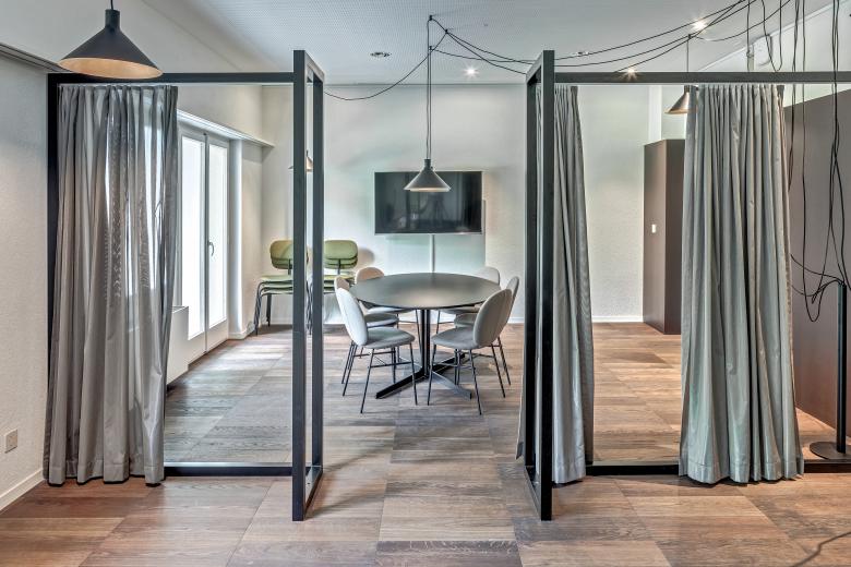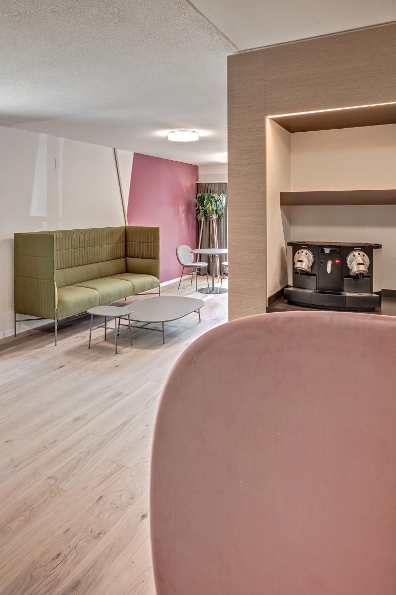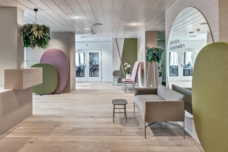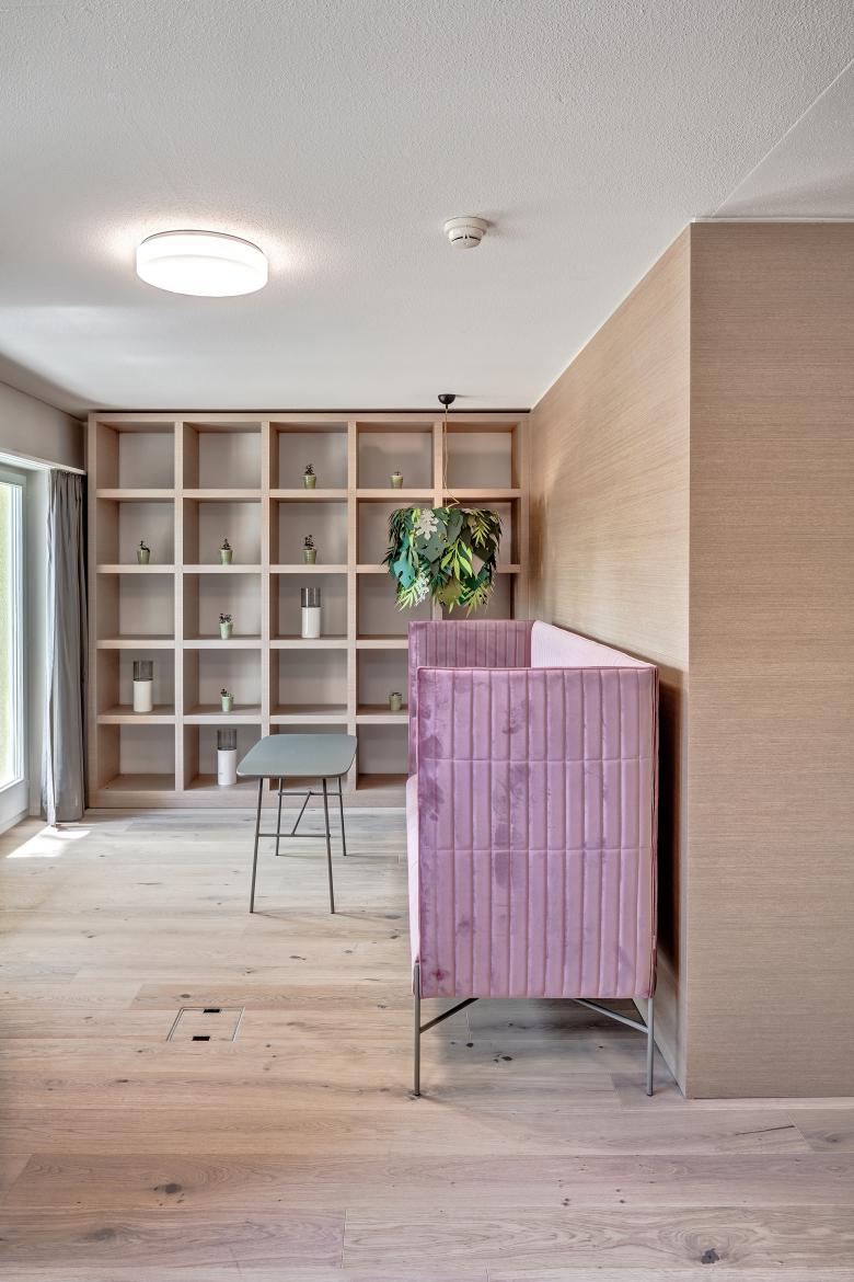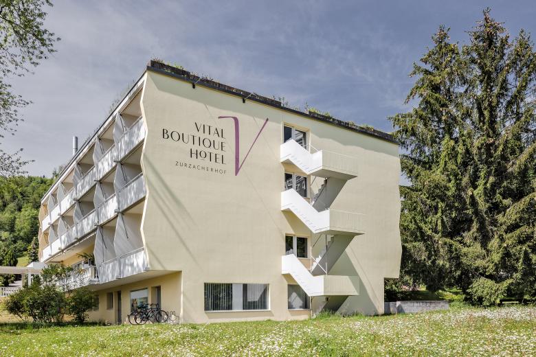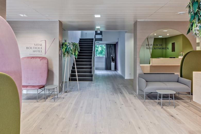 Revitalisiertes Hotel für revitalisierte Gäste. Damit das Vital Boutique Hotel Zurzacherhof Körper und Geist seiner Gäste fit machen kann, brauchte es zunächst selbst eine komplette Revitalisierung. Dieser innenarchitektonischen Kur nahmen wir uns an und entwickelten ein neues Interior-Design-Konzept. Oberflächen, Mobiliar und Beleuchtung, in natürlicher Form- und Farbgebung eingesetzt, spielen harmonisch zusammen und auch dank der Auffrischung des Stil-Mixes aus klassischer Kur-Architektur und 60er Jahre-Minimalismus entstand so ein einladendes Corporate Interior. Über dem Gesamtkonzept lag der Gedanke, Wohlbefinden durch schlichte Einfachheit zu erzeugen, indem die Liniensprache aus der Architektur aufgenommen und subtil in den Innenbereich abgeleitet wurde. Der neu strukturierte und versinnbildlichte, warm gestaltete Raum-Freiraum hebt den Ausdruck und vermag jeden Gast, emotional an das Kurhotel zu binden.